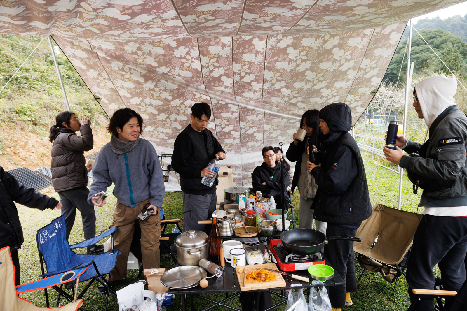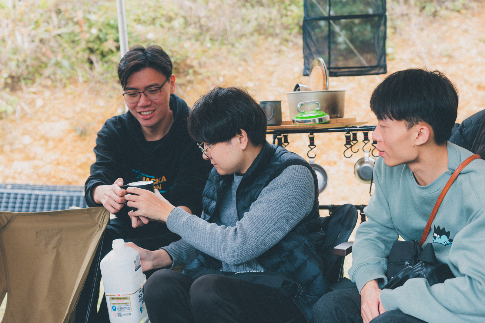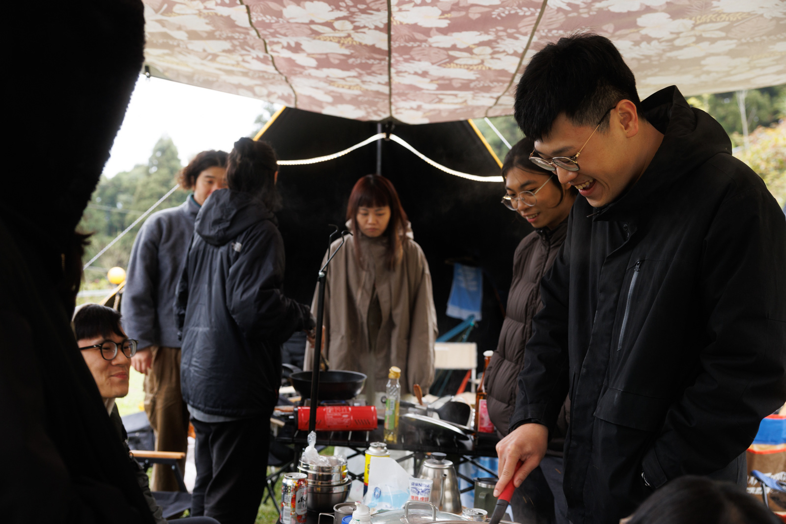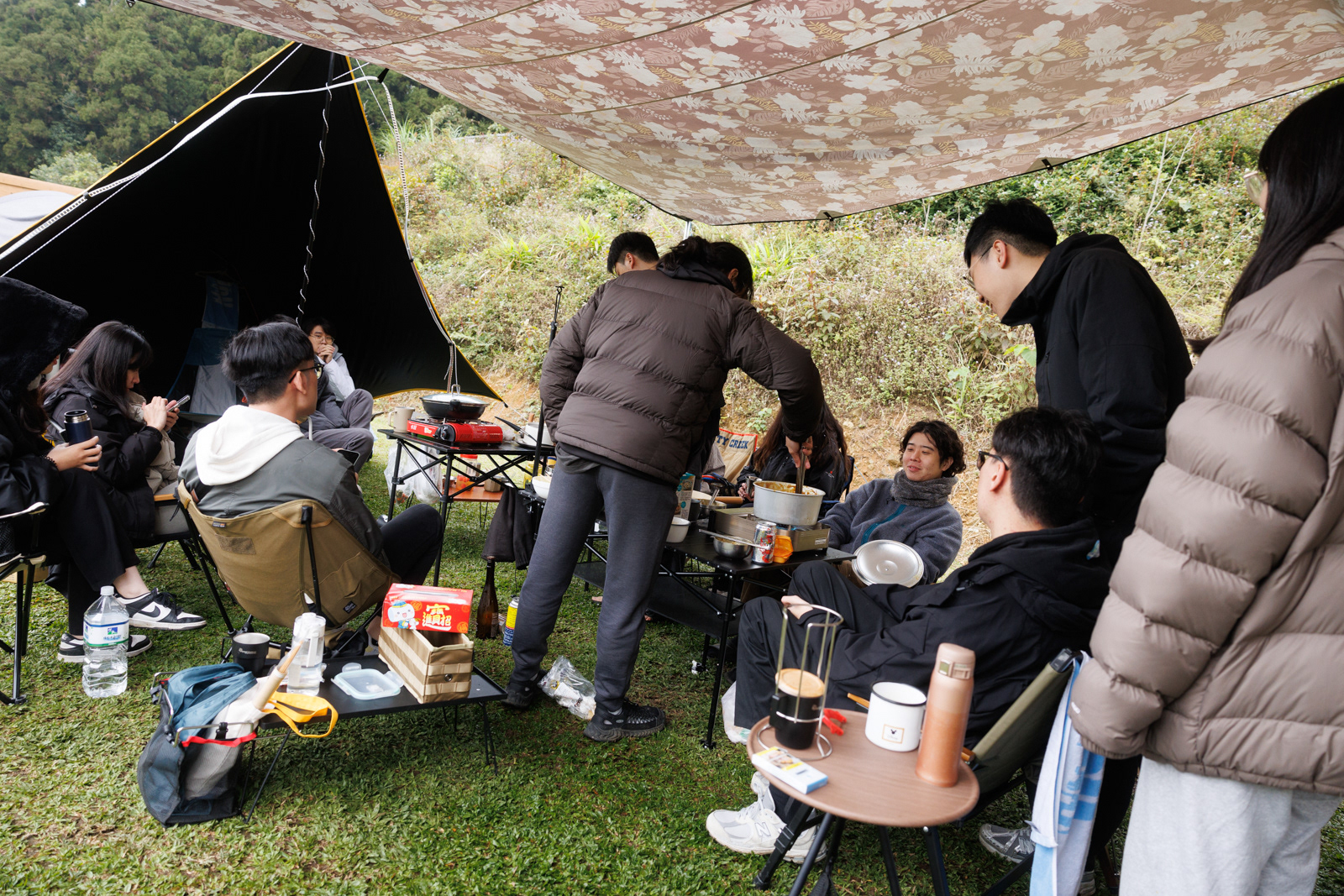 剛好遇上寒流,三天兩夜不時飄著小雨,冷到不想洗澡,喝了一些酒,圍著篝火大笑,一點熱湯,幾顆水餃,這裡是享趣露營區,下次還想去。